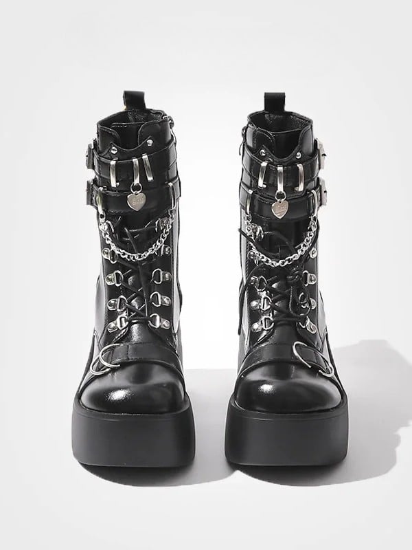 Chain - in Heart Platform System Multi-Closure Charm with Details Boots Style Punk Black