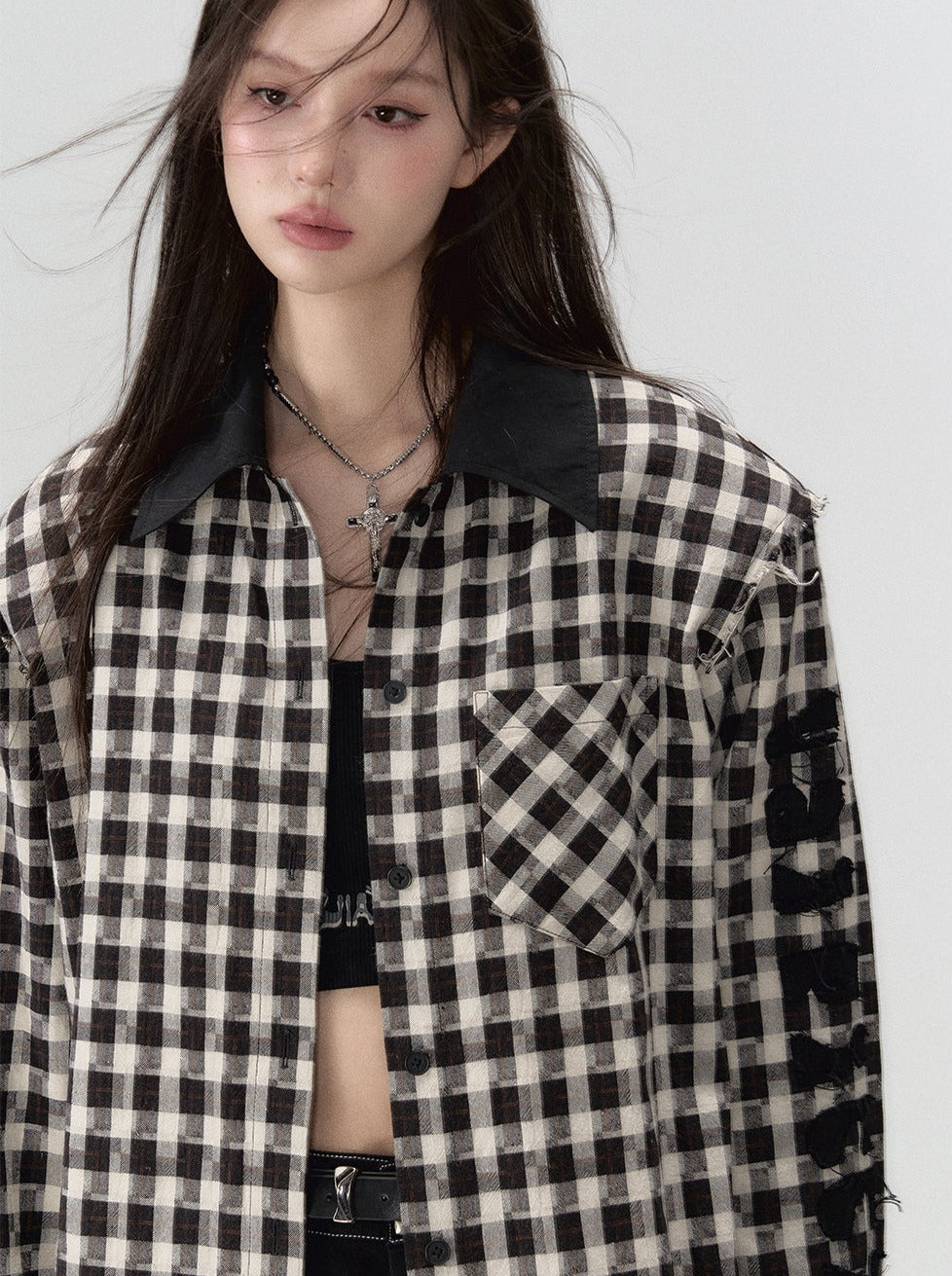 Our Check Shoulder Loose Silhouette Shirt is the perfect combination of comfort and style. Made with a loose silhouette, this shirt allows for easy movement while still maintaining a cute and adorable look. The check shoulder design adds a touch of playfulness to this must-have wardrobe staple.