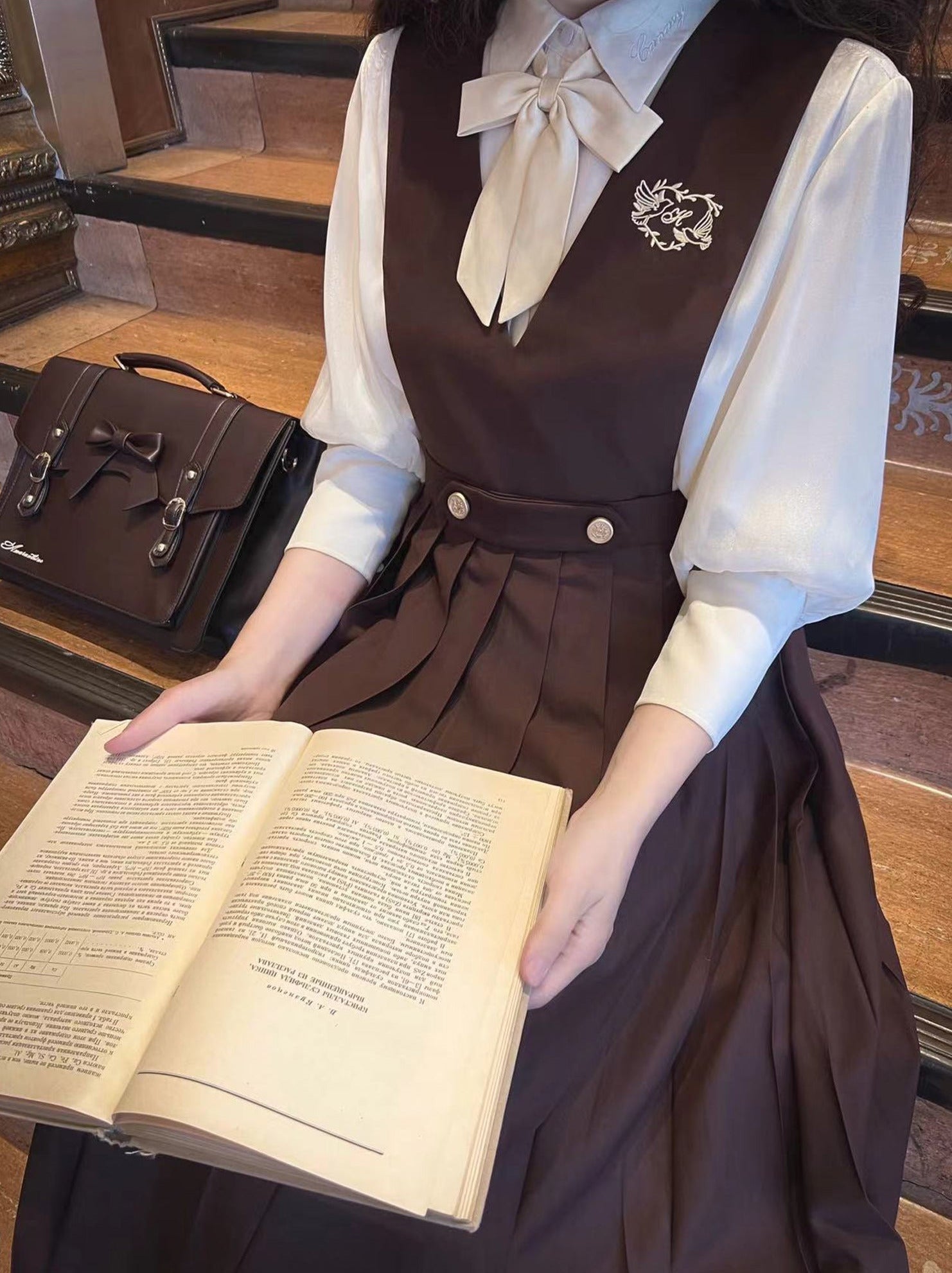 Chiffon Skirt Style Ribbon Inner Accessories V-Neck Cream Shirt College Vest