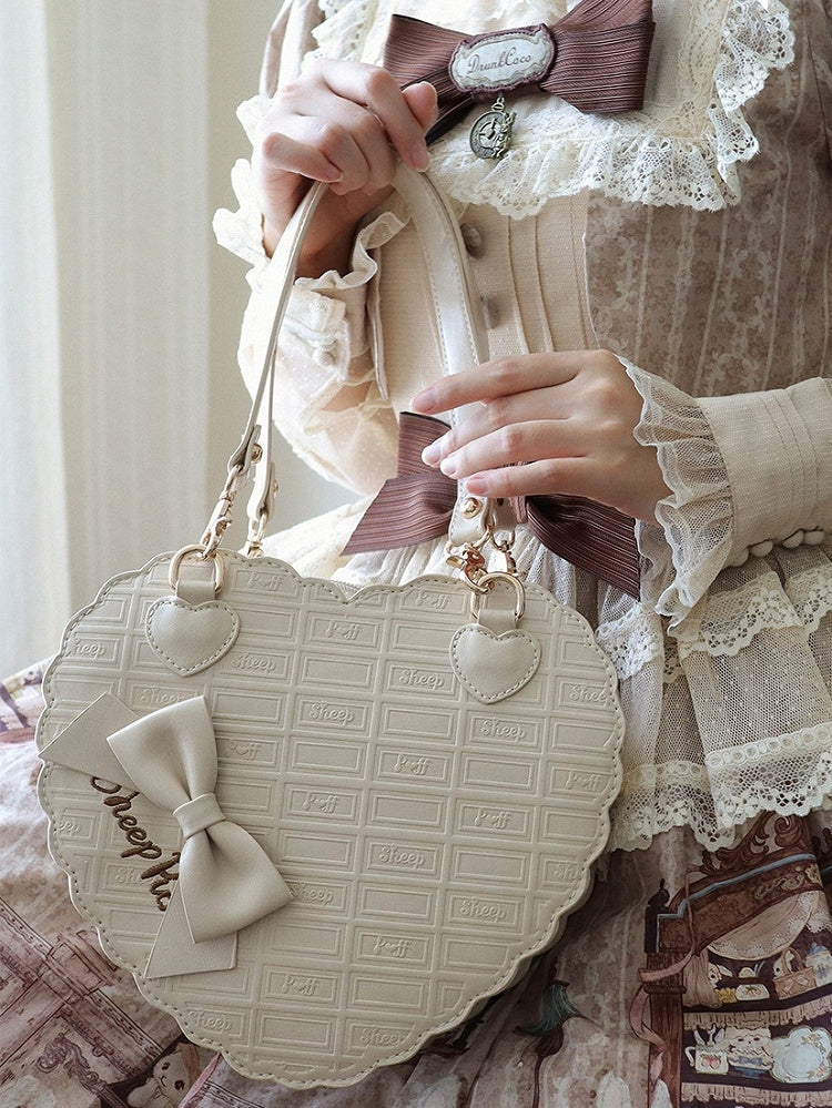 Chocolate Motif & Bow Accents PU Ash Gray 3-Way Heart-shaped Bag in Sweet Lolita