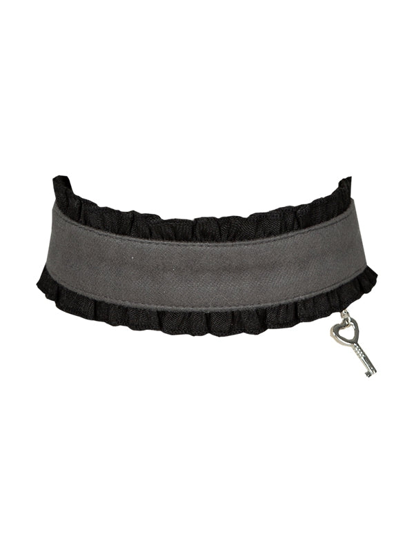 Choker Gray Black Ruffled with / Lolita Maid Key Charm Heart
