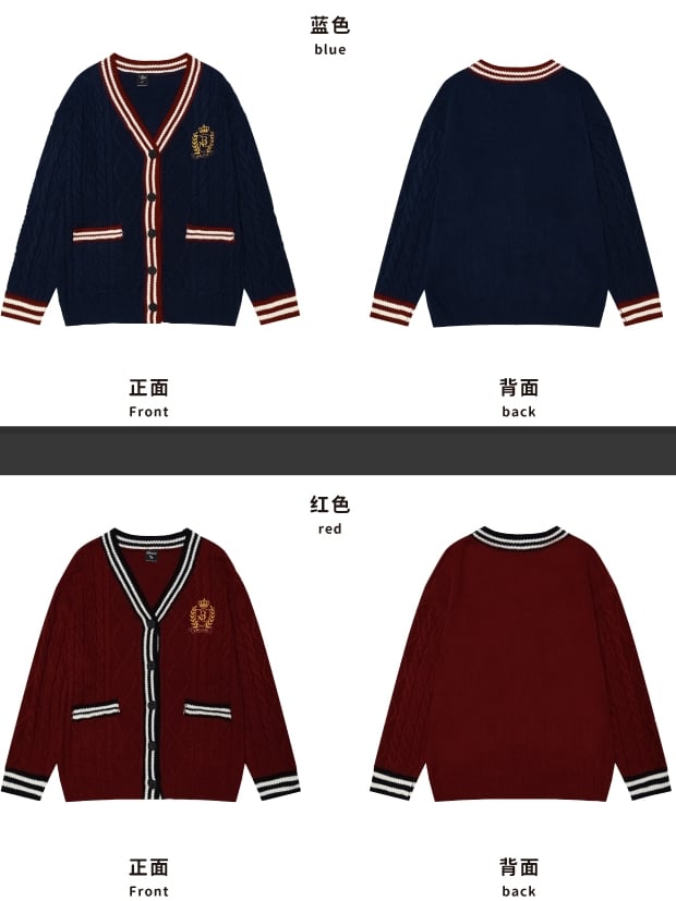 This Christmas Navy Blue V-neck Preppy Loose Cardigan with Contrast Striped Trim is perfect for staying cute and cozy during the holiday season. Its loose fit and contrast stripes add a touch of preppy style while keeping you warm.