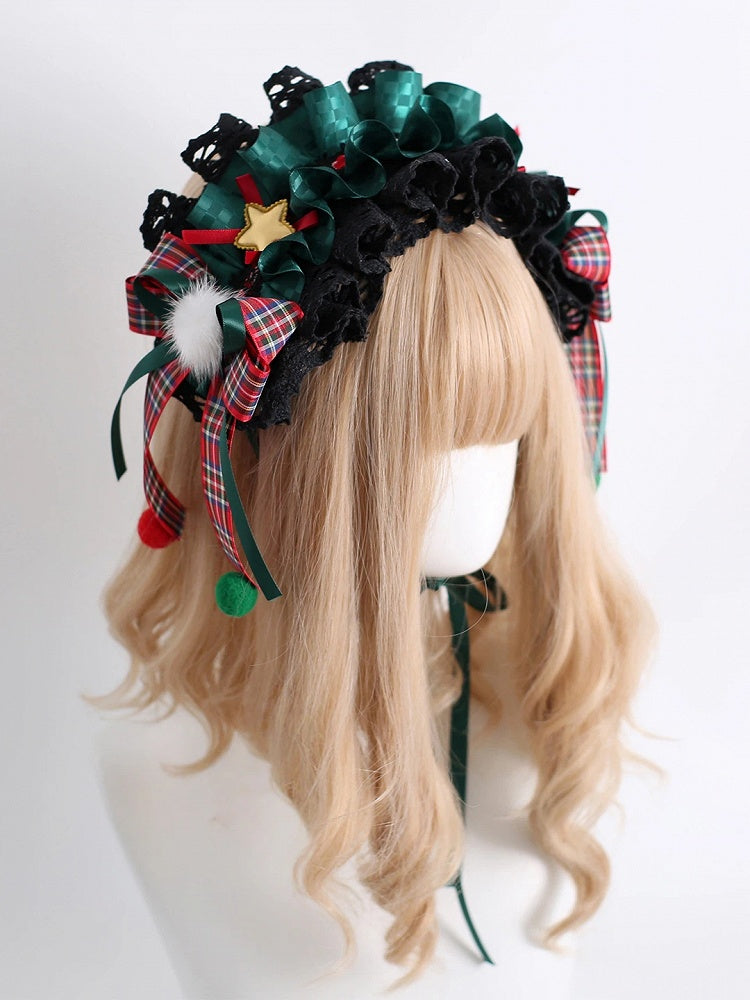 Christmas-Themed Plaid Pom-Poms Hairband with Ruffled