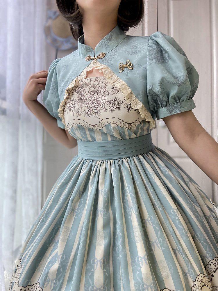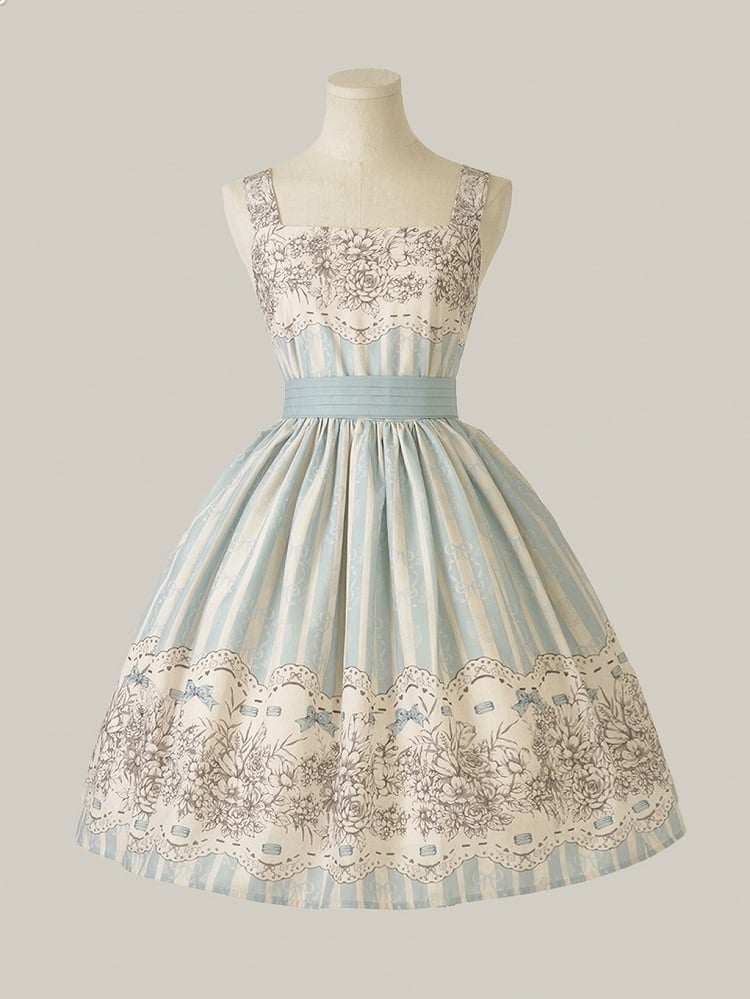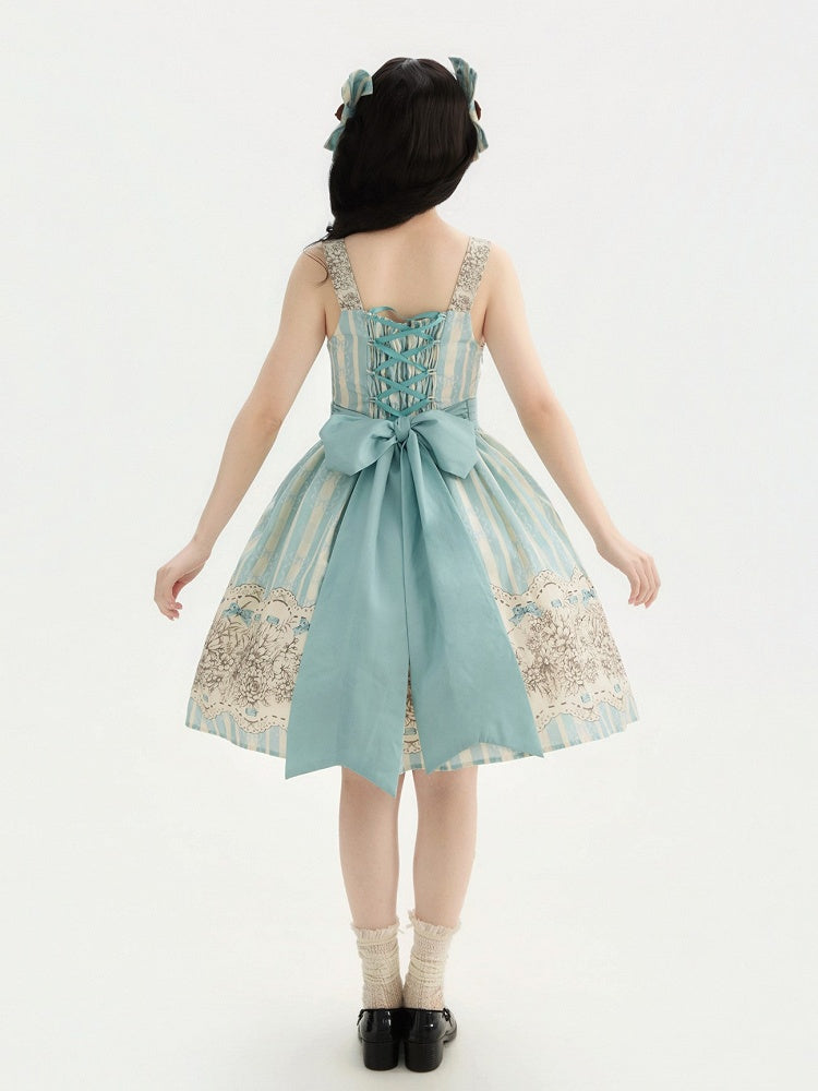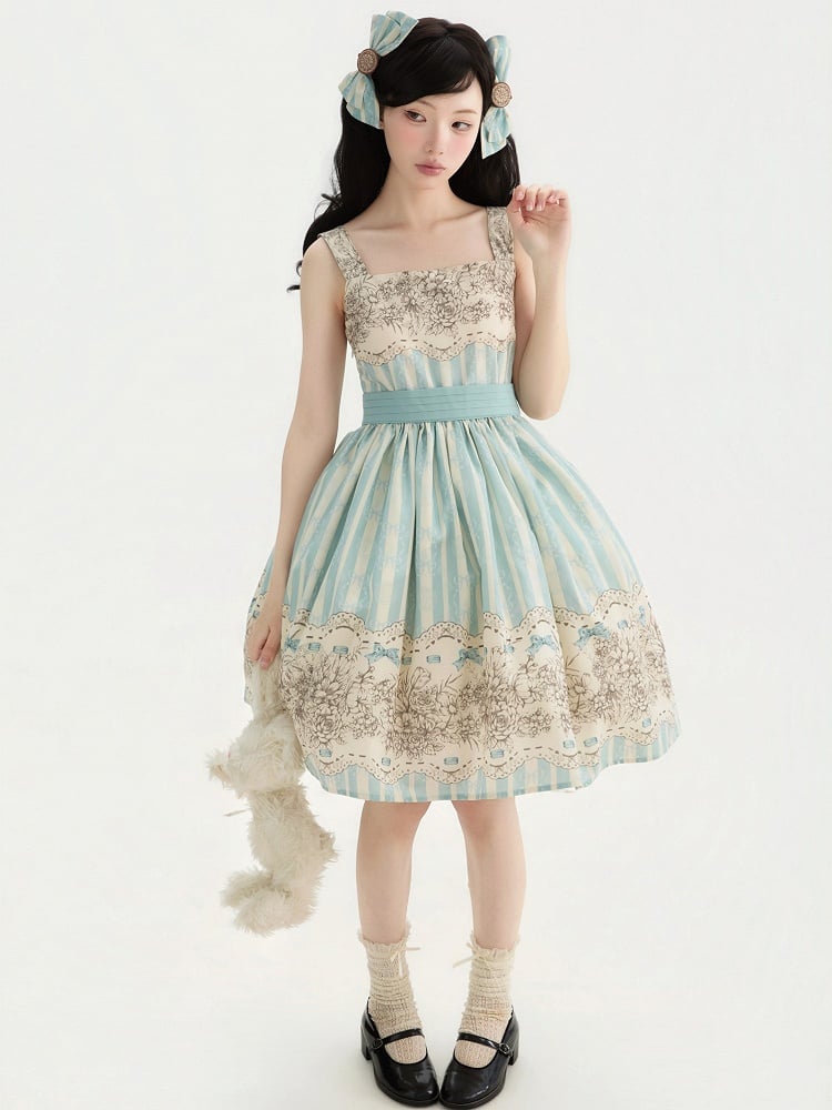 Short Version Blue Floral and Clock Print Classic Lolita Jumper Skirt