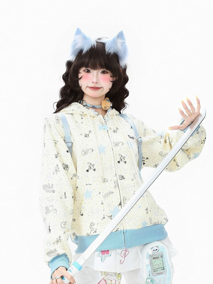 Closure Apricot/Green Zipper with Kawaii Daily Hoodie Jacket