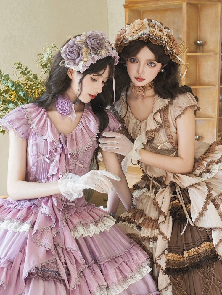 Pink and White Old School Lolita Fashion Dress Bowknot Detais Lolita JSK Set