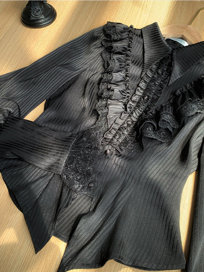 Collar Sleeves Lolita Black Shirt Gothic Pointed Long Foldover