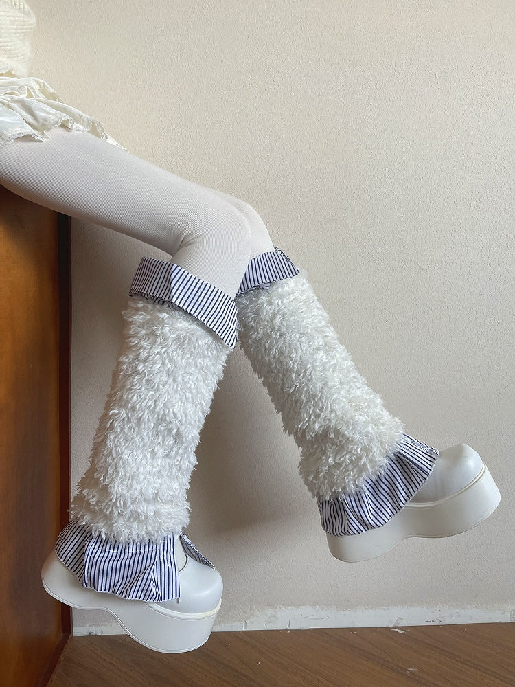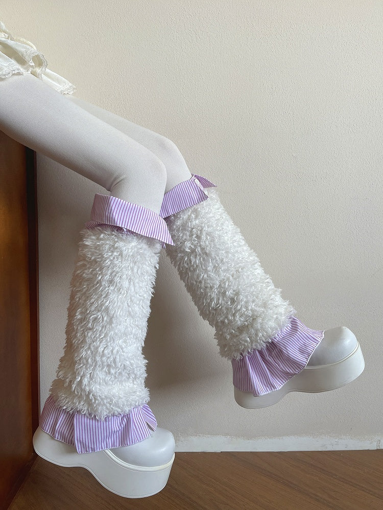 Collared 3-Color Leg Warmers Striped