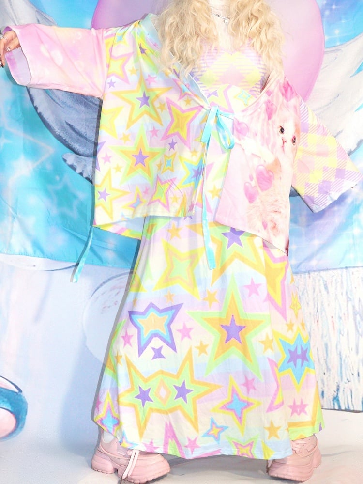 Colorful Y2K Cat Star And Heart Print Plaid Pattern Sun Protection Top