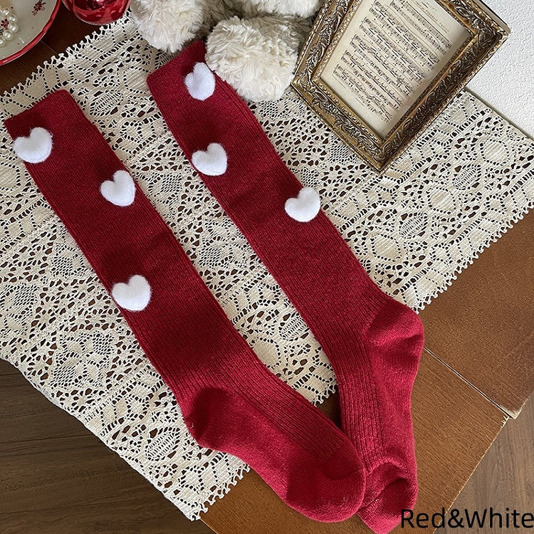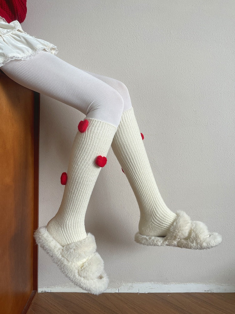 5 Colors Plush Heart Decorated Calf Socks