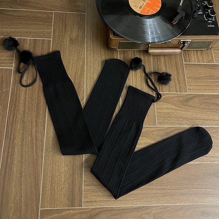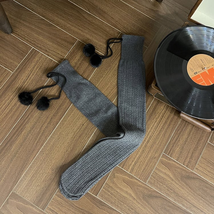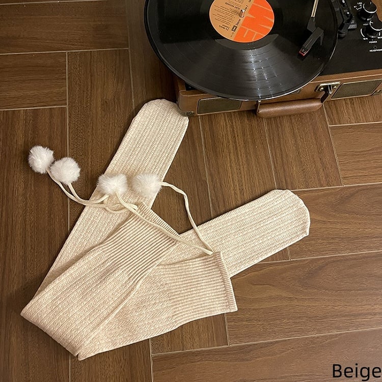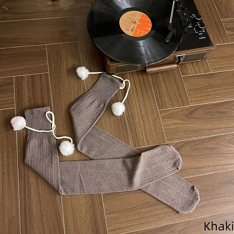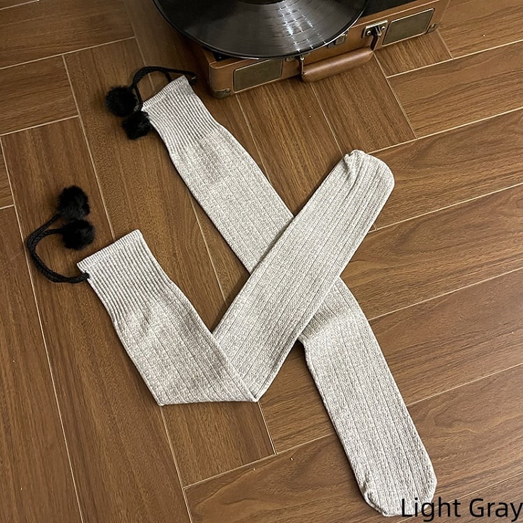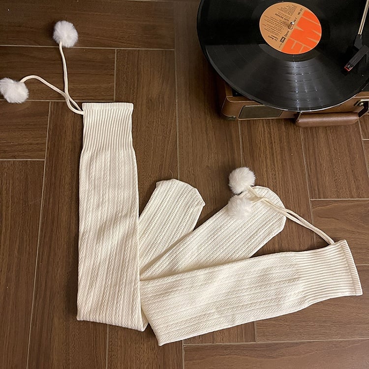 6 Colors Cable Knit Slimming Warm Stockings with Pom-Pom Decorations