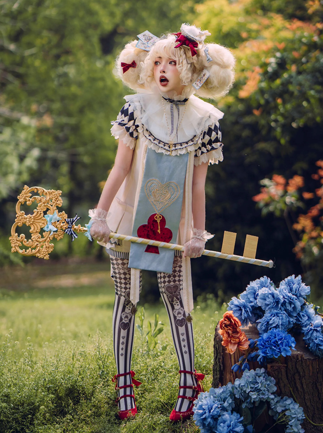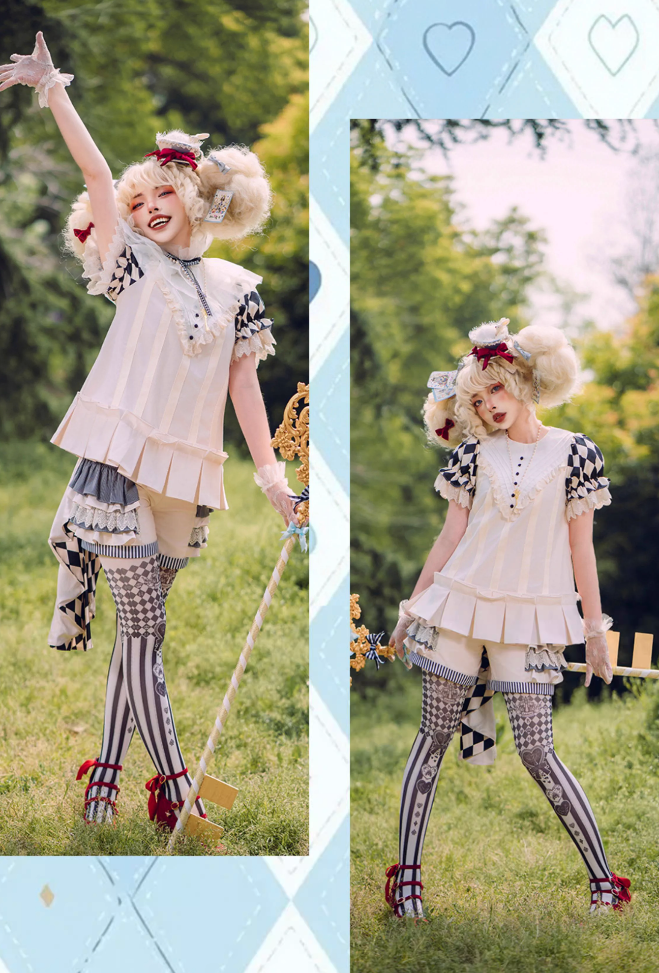 Basic suit set includes short sleeve top + long sleeve + shorts + train + heart club embroidered false collar with bunny ears and tail.