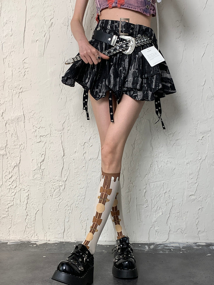 Cookie Print Y2K Bowknot And WhiteBrown Underknee Bittersweet Stockings