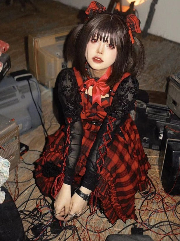 This adorable asymmetrical rock skirt features a suspended design, perfect for any dark and edgy look. Its check pattern adds a touch of uniqueness, making it a must-have for your wardrobe. Embrace your inner rebel and stand out from the crowd with this trendy piece.