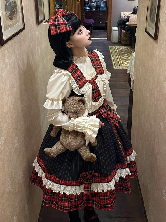 Black and White Old School Lolita Fashion Dress Bowknot Lolita JSK Set