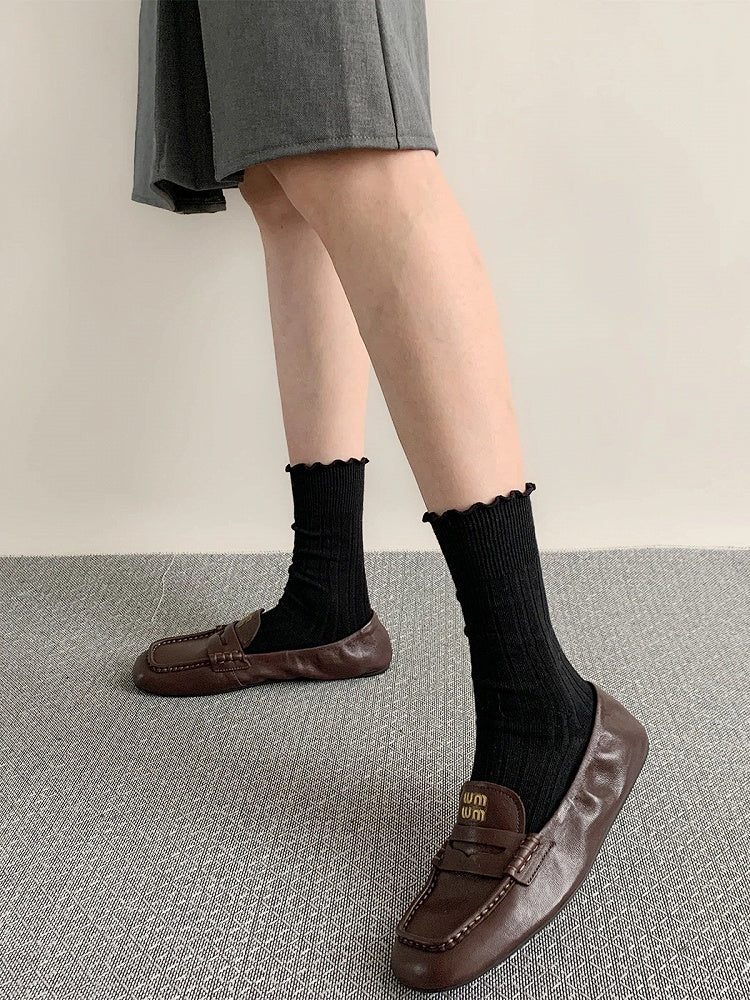 Ruffle Cuff Ribbed Crew Socks (5 Colors)