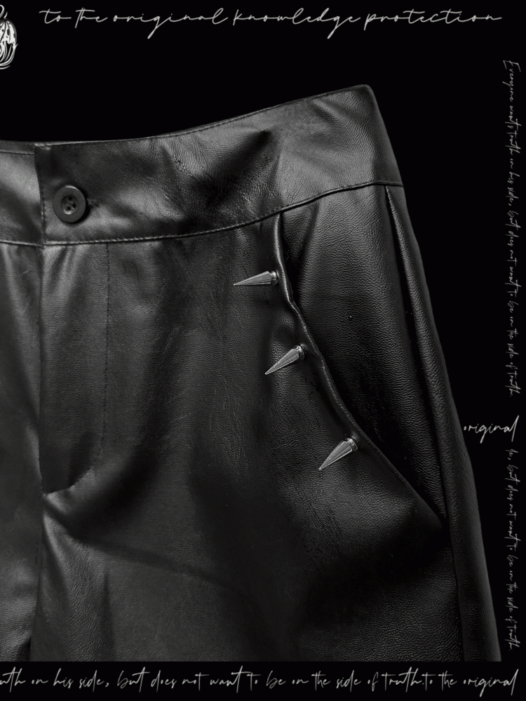 Cross Y2K Red Black PU Studded Glamorous Pattern Wide-Leg Pants