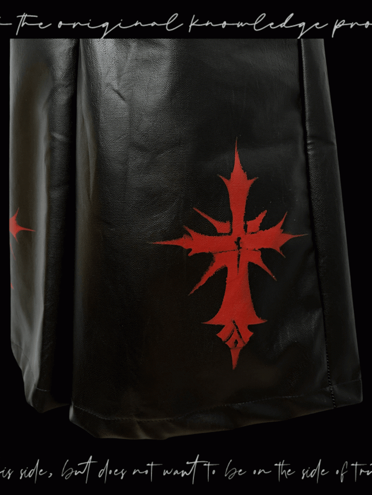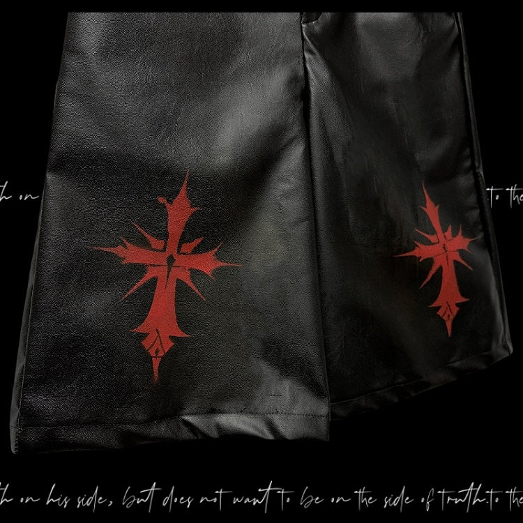 Y2K Red Cross Pattern Black PU Studded Glamorous Wide-Leg Pants
