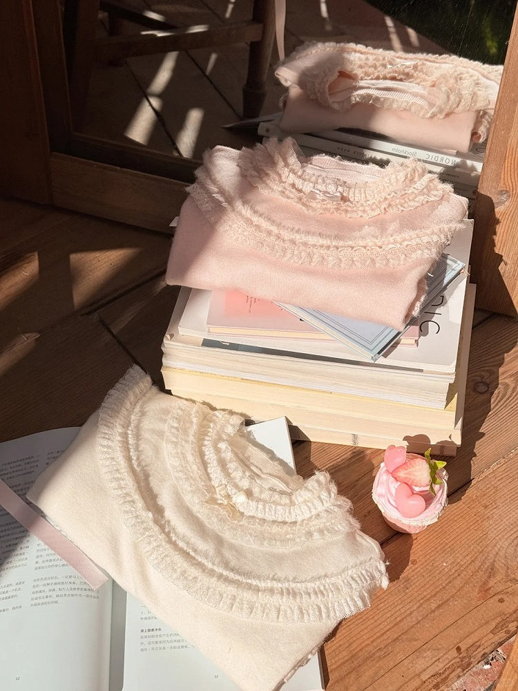 Beige Long Sleeves Lolita Top with Lace Neckline and Cuffs