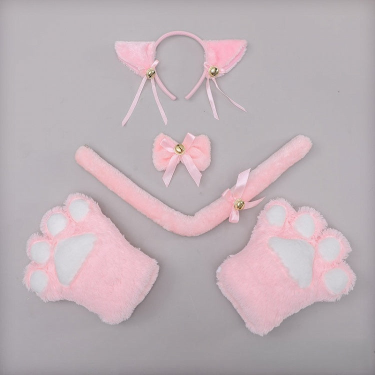 Pink Lolita Cute Set - KC + A Pair of Kitten Paw Gloves + Kitten Tail + Bow Tie