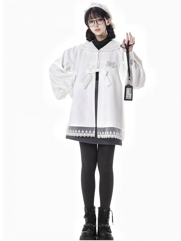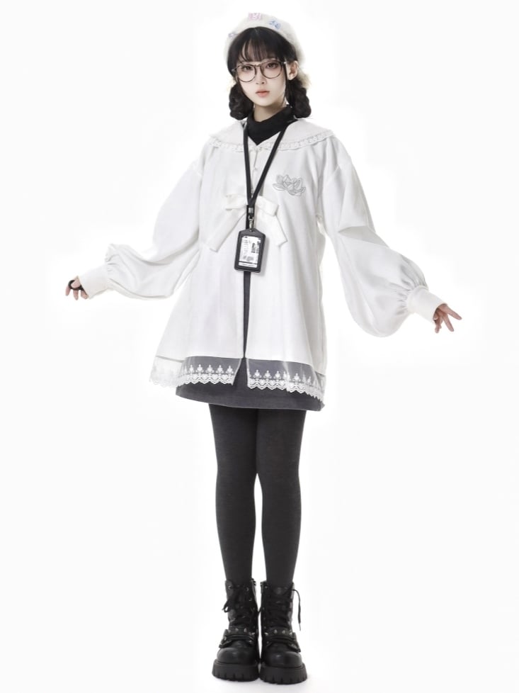 Black and White Old School Lolita Fashion Dress Bowknot Lolita JSK Set