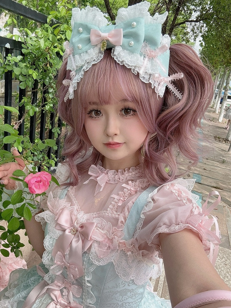 Pink and White Old School Lolita Fashion Dress Bowknot Detais Lolita JSK Set