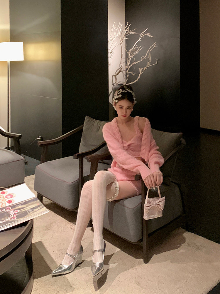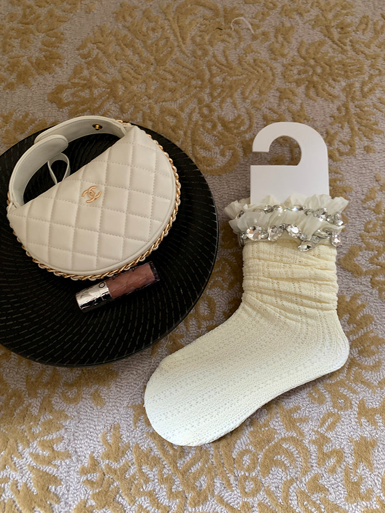 Decorated Socks Over-the-Knee Rhinestones Milky in Sparkling