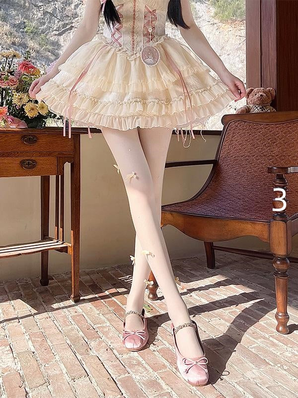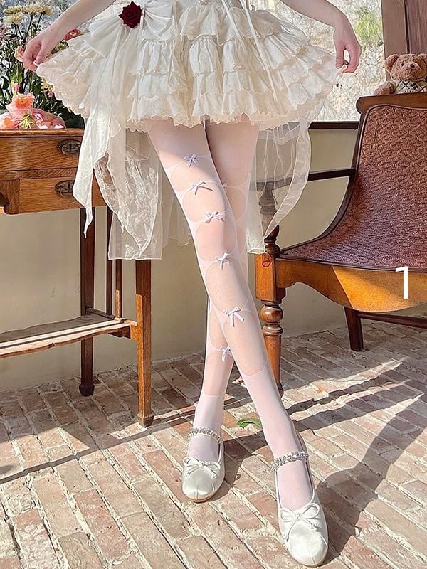 Decorated Lolita Multi-Layer Calf White/Black Bow Trim Lace Socks