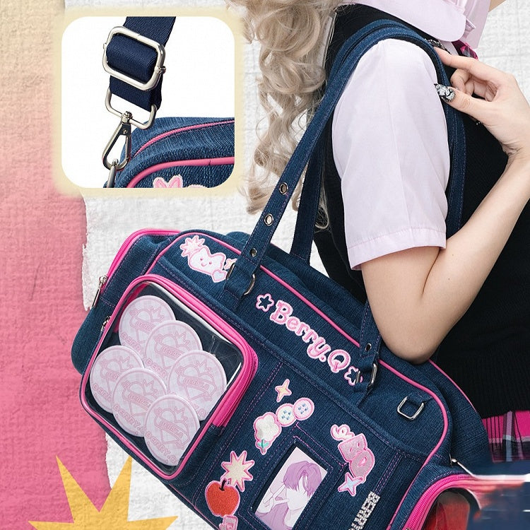 Denim with Hand Ita Deep Blue Cute Embroidery Bag