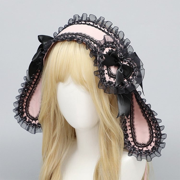 4 Color Options Bowknot Details Heart Design Lace Trim Bunny Ear Hairband