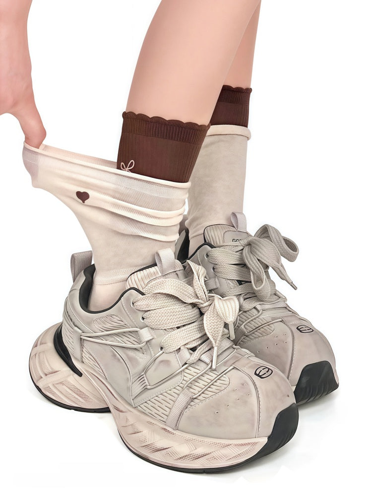 5 Colors Heart and Bowknot Pattern Fake Two-Piece Design Socks