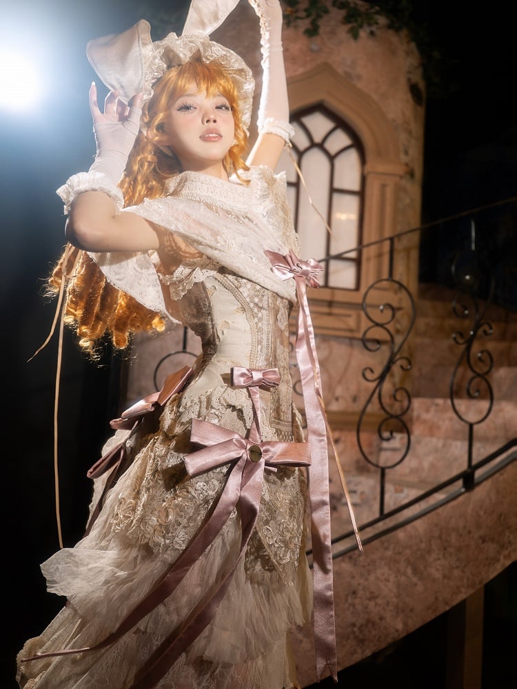 Cascading Halter Lace Ruffle Illusion Detachable Accents Rococo Top Corset with Neck