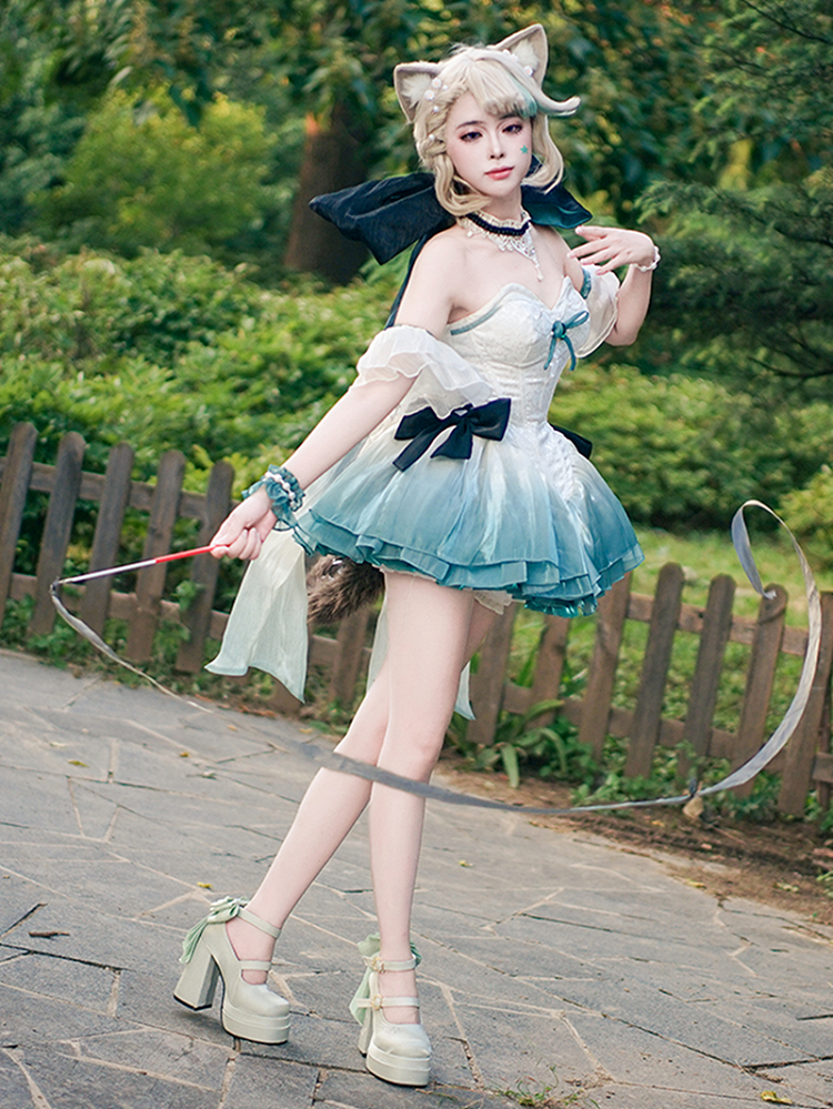 Blue and White Old School Lolita Fashion Dress Bowknot Detais JSK Set