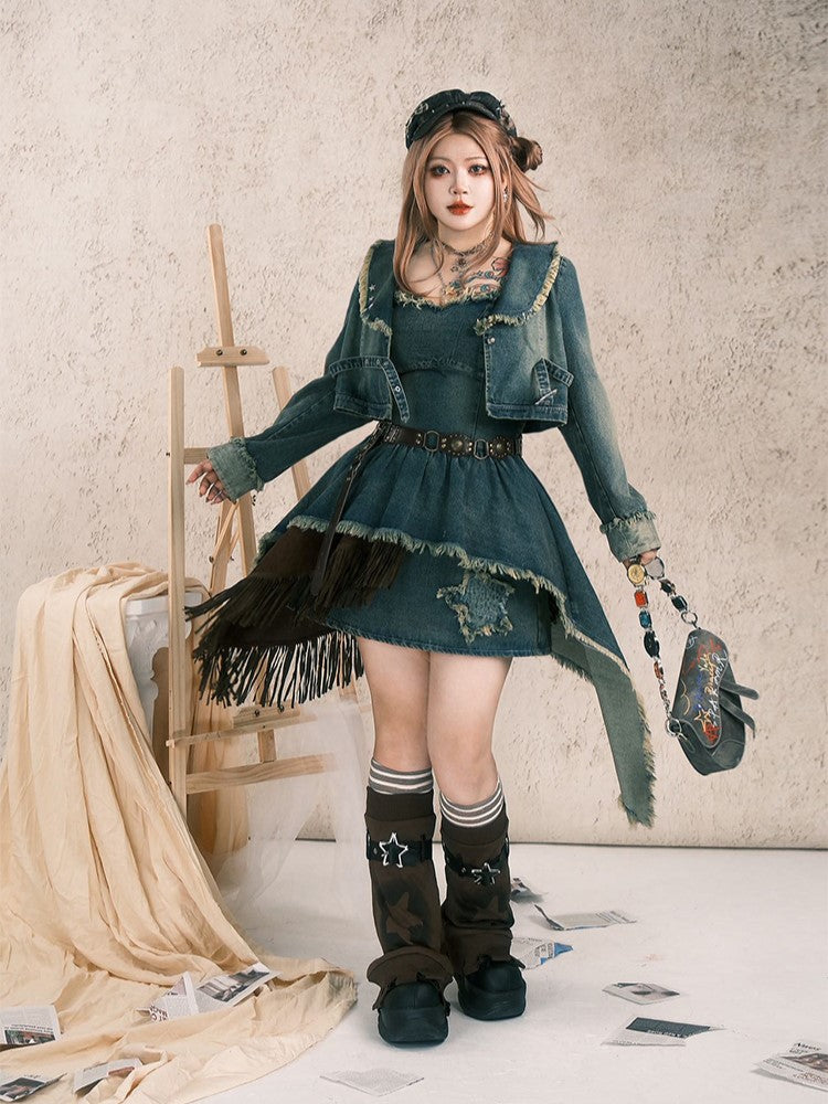 Details Punk Size PU Studded Brown Wasteland Plus with Belt Y2K