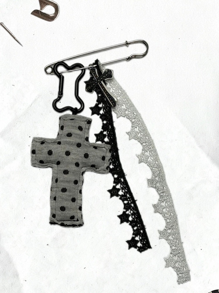 Light Grey / Dark Grey Accessory - Detachable Polka Dot Cross with Star & Lace Details