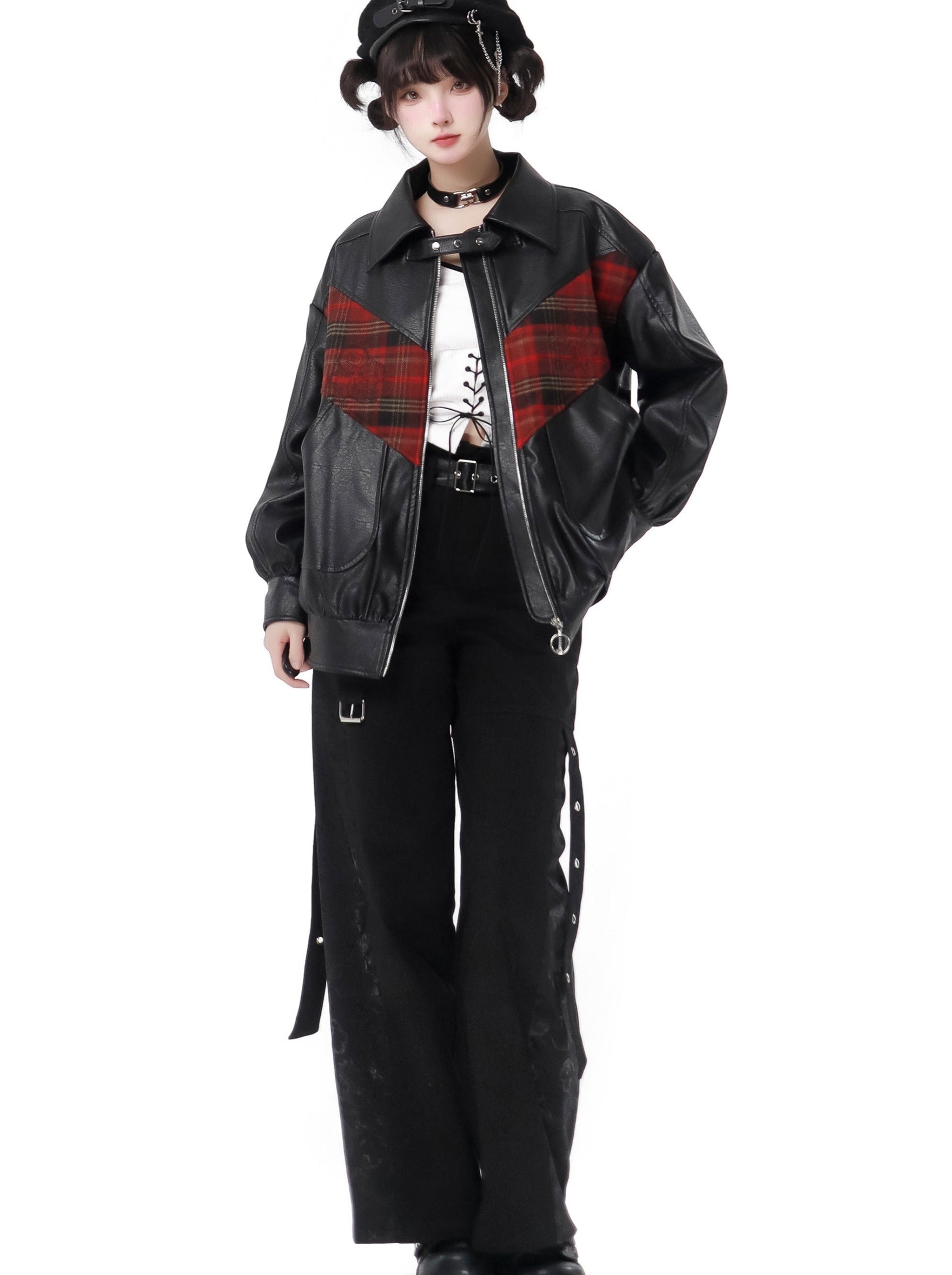 Dragon Check Plus Velvet Leather Jacket Suit