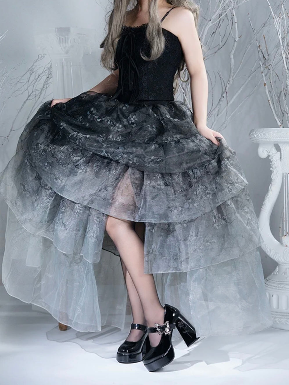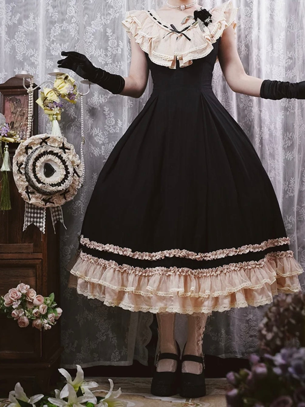 Black and White Old School Lolita Fashion Dress Bowknot Lolita JSK Set