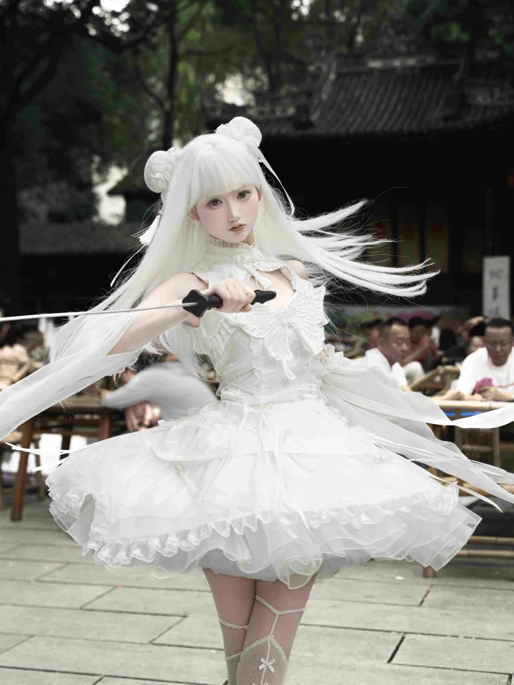 Dress Collar Qi Lolita Butterfly with Qipao Sleeves Theme White Banded