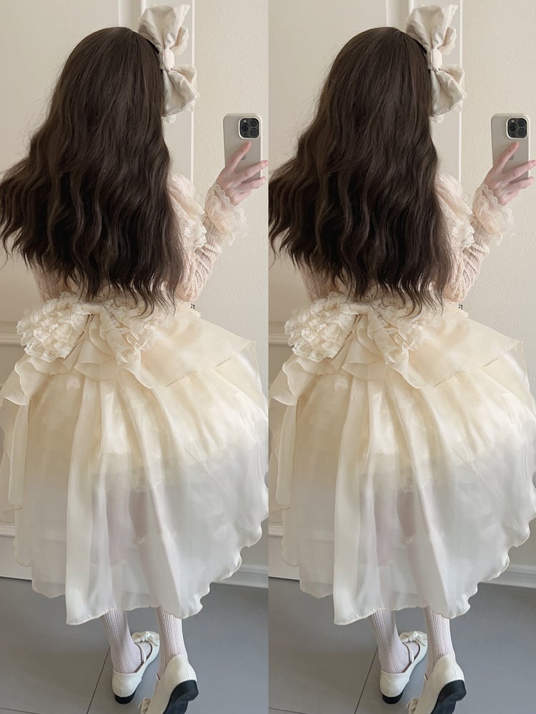 Apricot Multi-Layered Lace Ruffle Hem Lolita JSK Dress + Bow Train / JSK Only