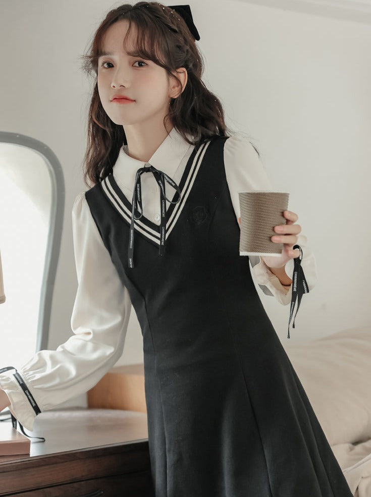 Black and White Old School Lolita Fashion Dress Bowknot Lolita JSK Set
