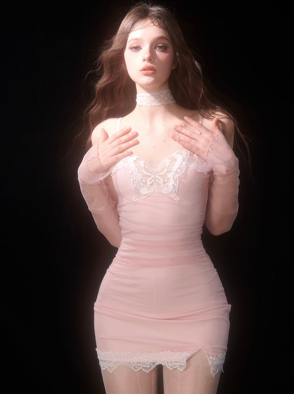 Pink and White Old School Lolita Fashion Dress Bowknot Detais Lolita JSK Set