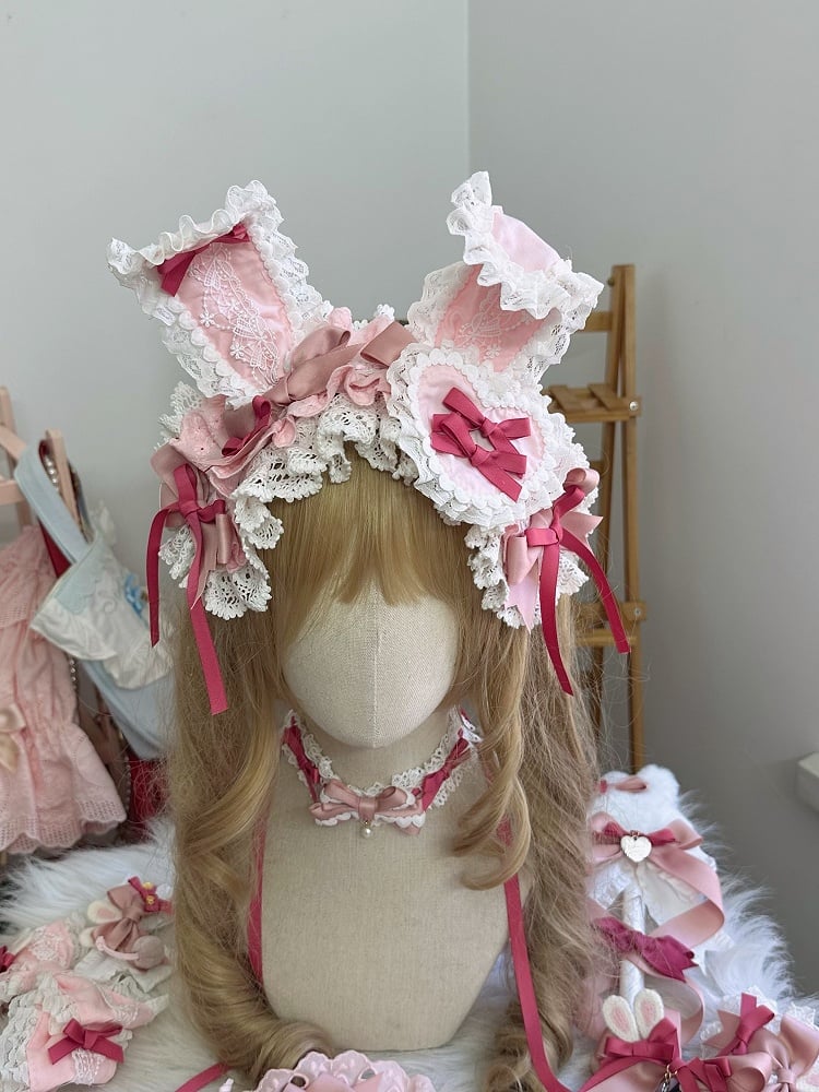 Ear Hairband Trim Pink/Light Details Pink Bow Lace Bunny