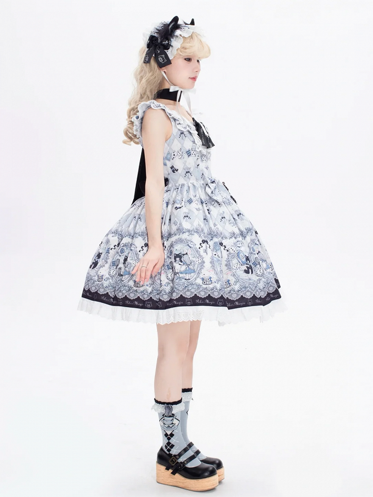 Black and White Old School Lolita Fashion Dress Bowknot Lolita JSK Set