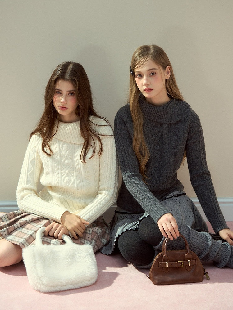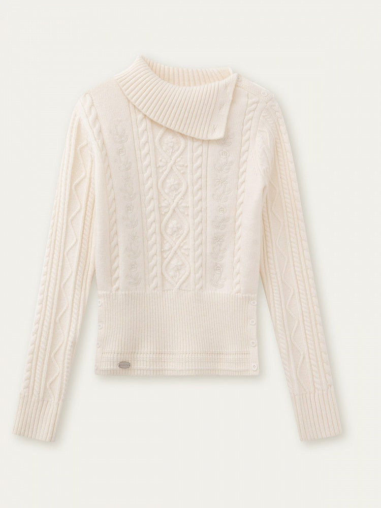 Elegant Sweater Cable Mock White Knit Vintage Neck
