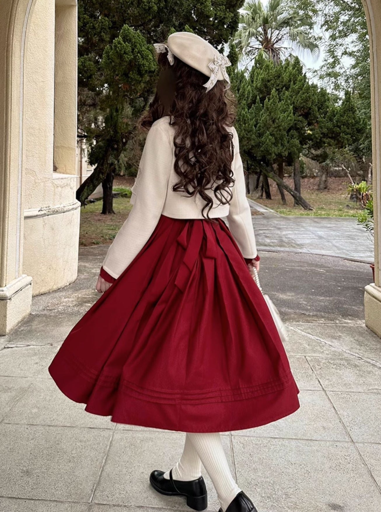 This elegant white short waist retro features a jacket design logo, adding a touch of cuteness to your outfit. Perfect for any occasion, this stylish piece is both fashionable and functional.