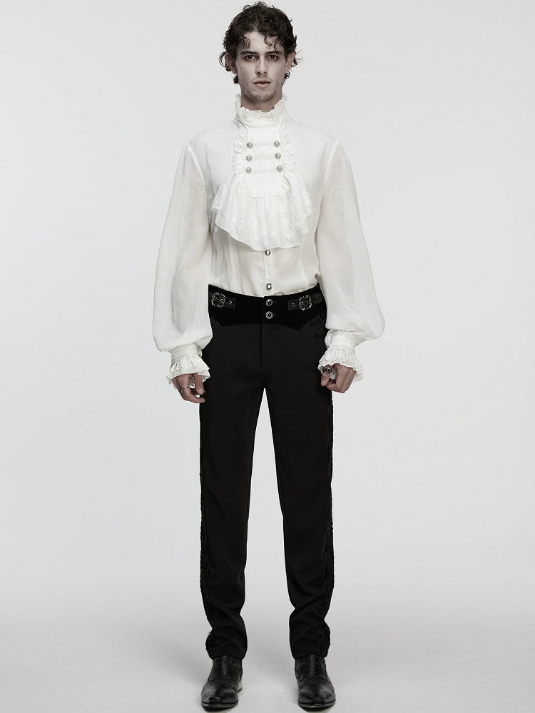 Lolita Buttoned Wide-Leg Panels Ouji with Cincher High-Waisted Draped Pants Black