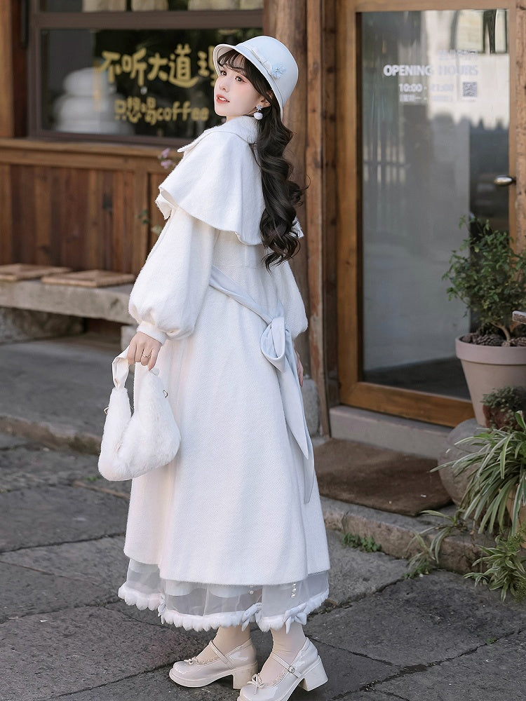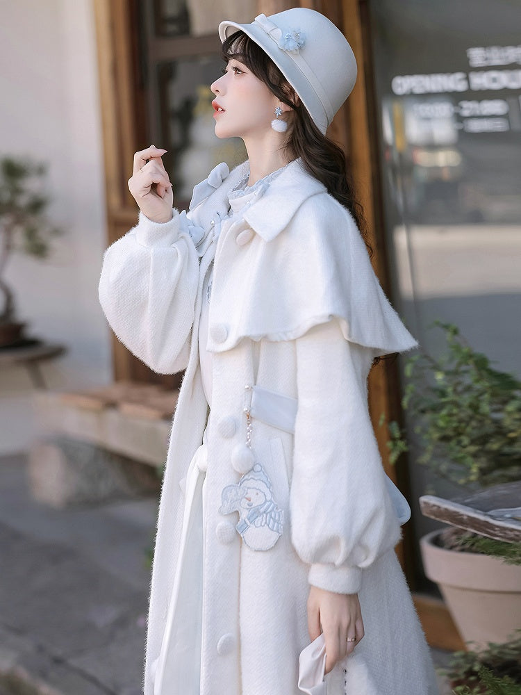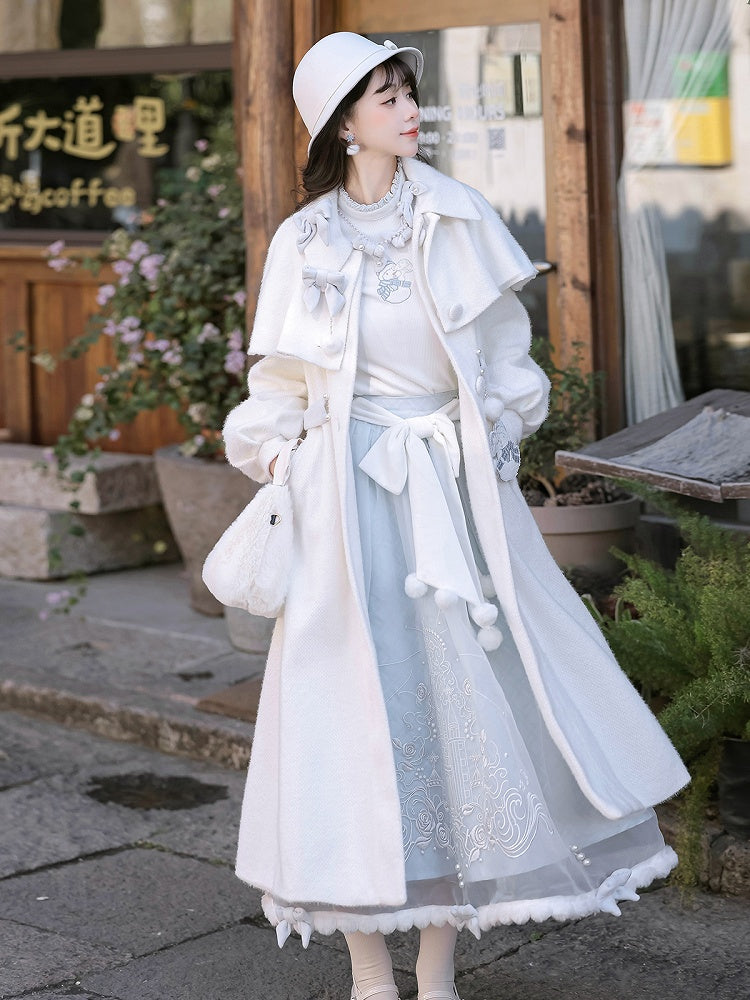 Embroidered Lolita Skirt Winter Set Snowman Blue White Coat Top Elegant + Knitted Castle