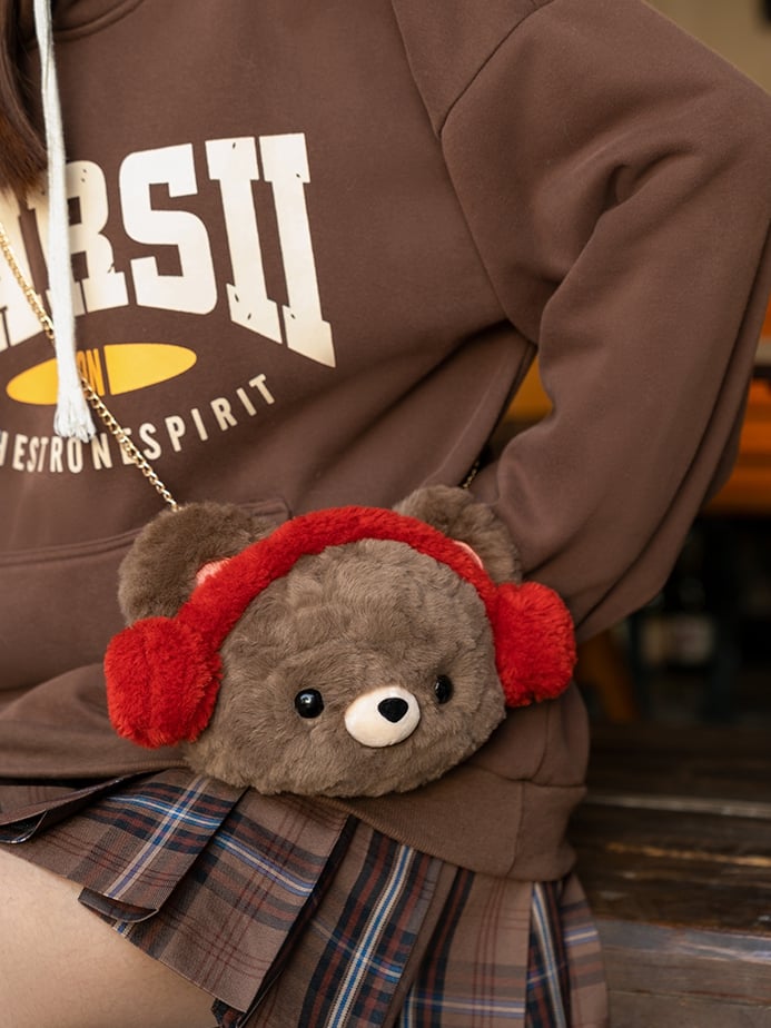 Embroidery Plush Letter Backpack BlueBrown With Bear A Star And Plushie Detachable