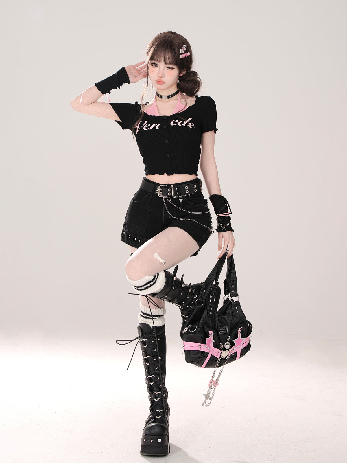 Faux Short Halter Neck U-neck T-shirt and two-piece