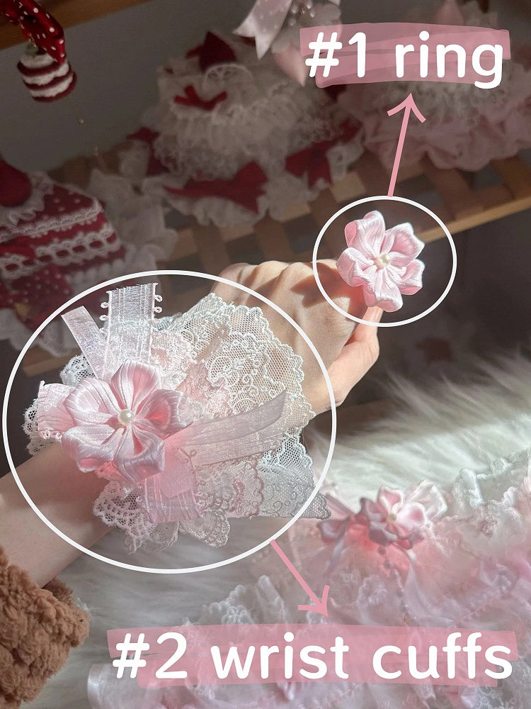 Floral Accessories (Ring or Wrist Sakura Pink Cuffs) Sweet Lolita